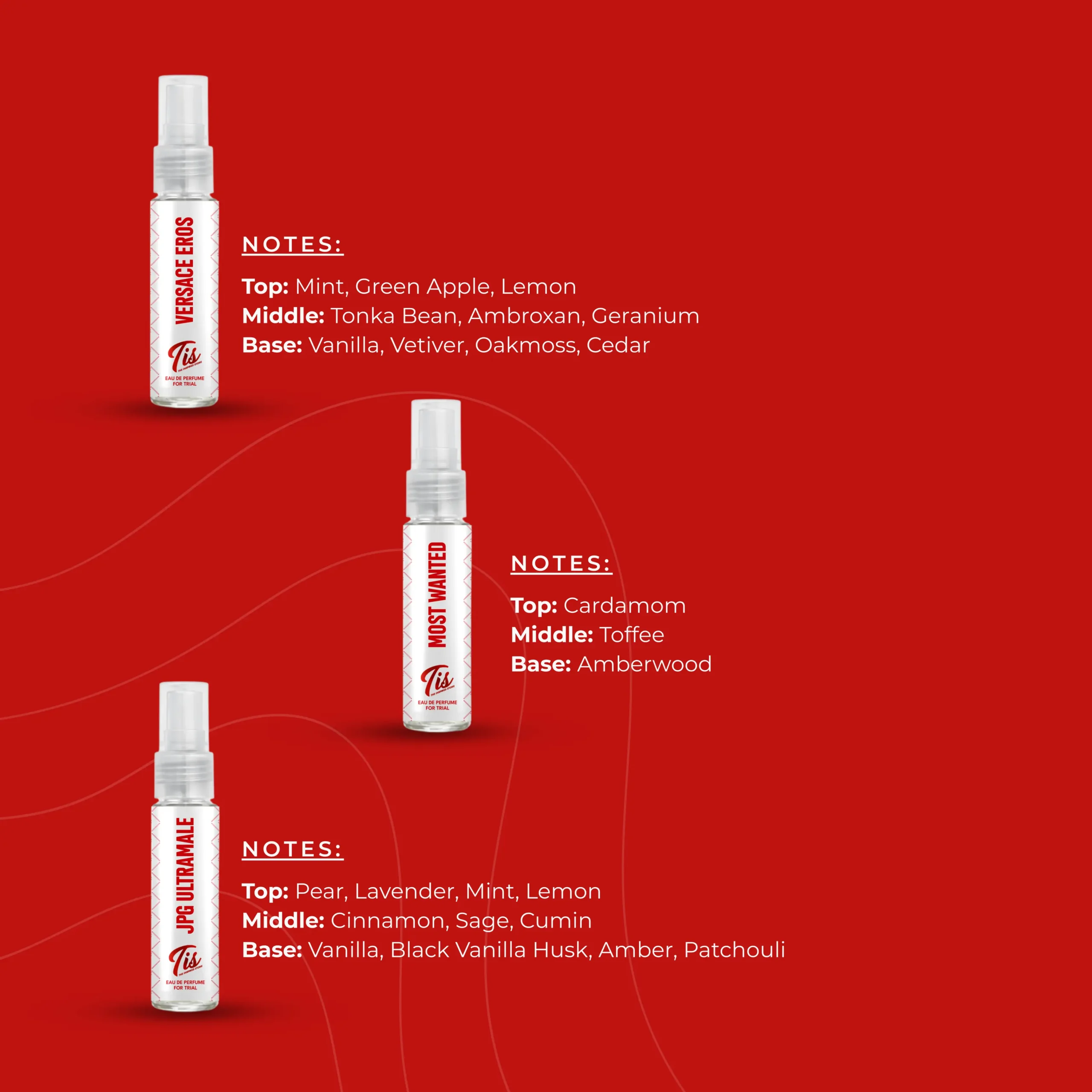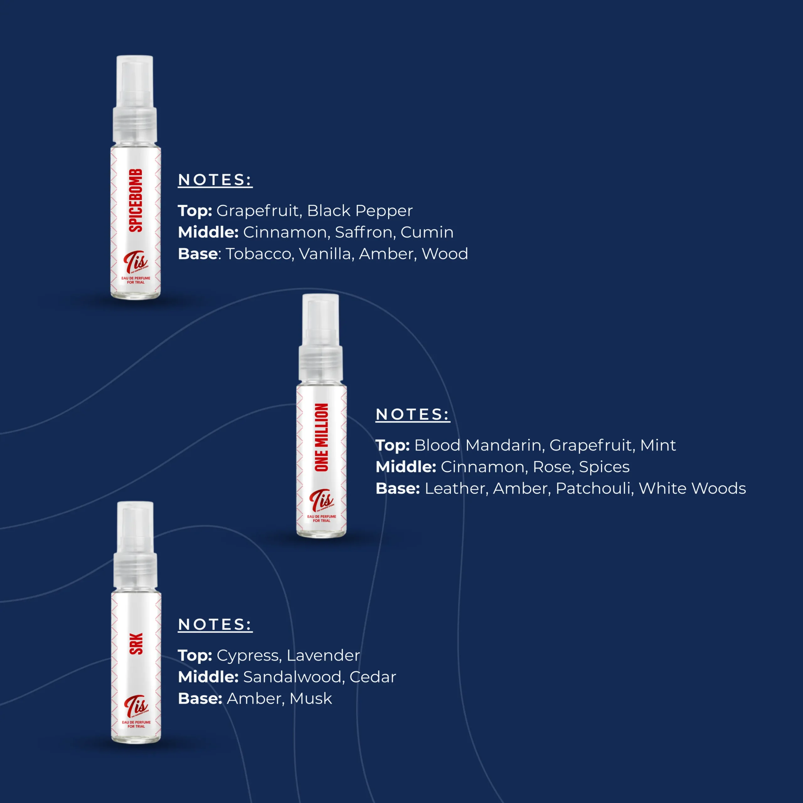 This trial set is a bold, high-impact collection designed for lovers of modern, attention-grabbing fragrances. It blends fresh citrus and aromatic openings, sweet and spicy hearts, and deep, sensual woody-amber bases, creating a versatile range that moves effortlessly from daytime confidence to night-time intensity.
