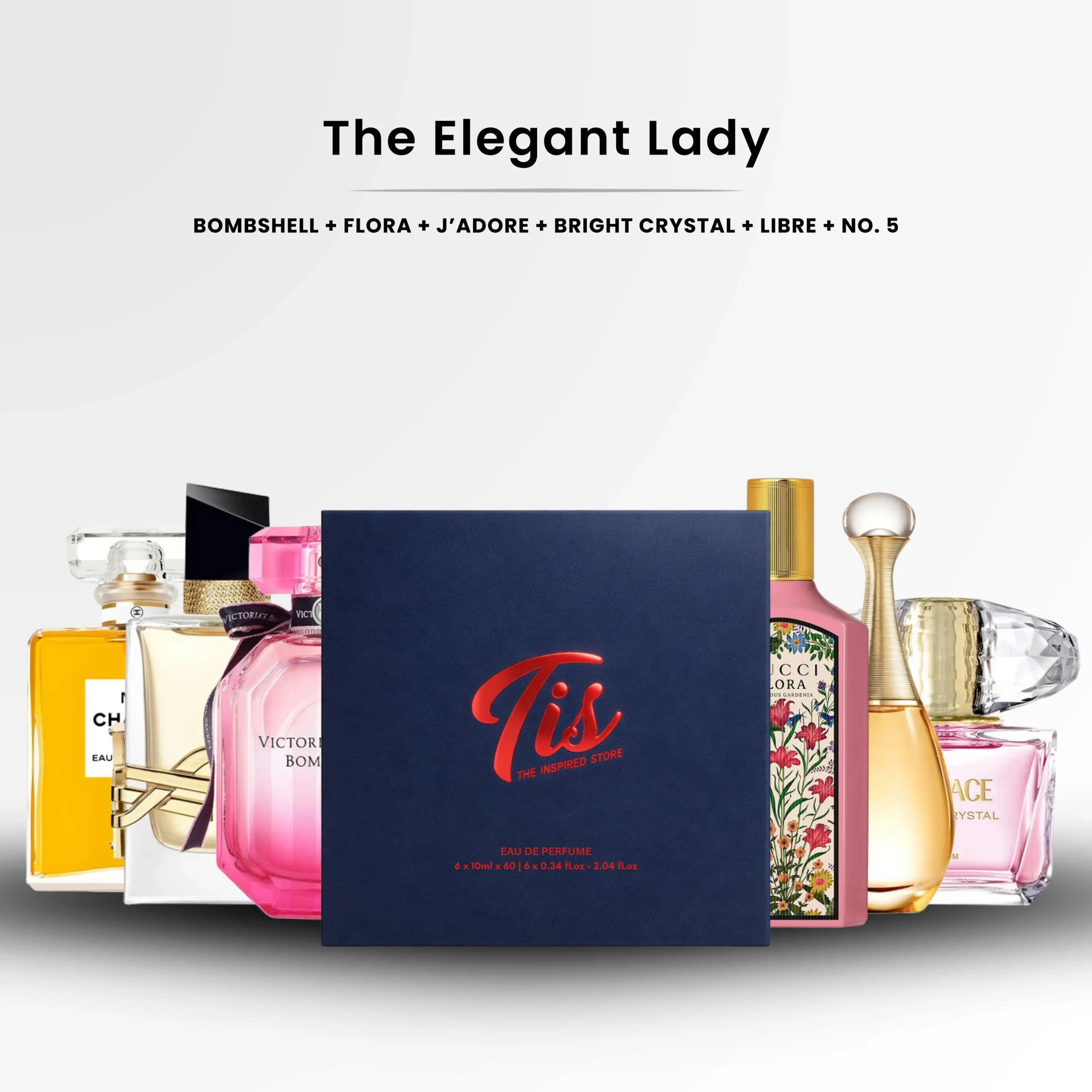This trial set is a refined, elegant collection of iconic feminine fragrances, ranging from fresh and fruity florals to rich, sensual, and timeless classics. It offers a complete journey through modern femininity, floral sophistication, and luxurious depth, making it perfect for daily wear, special occasions, and evening elegance.